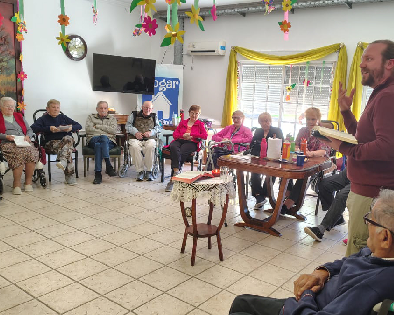 El Hogar, que abrió sus puertas en 1978, tiene capacidad para 35 personas que pueden realizar diferentes actividades como talleres lúdicos, de estimulación cognitiva, yoga, manualidades, festejos de cumpleaños, espacios de intercambio intergeneracional mediados por proyectos con otras instituciones, y espacios de espiritualidad como estudios bíblicos y celebraciones religiosas.